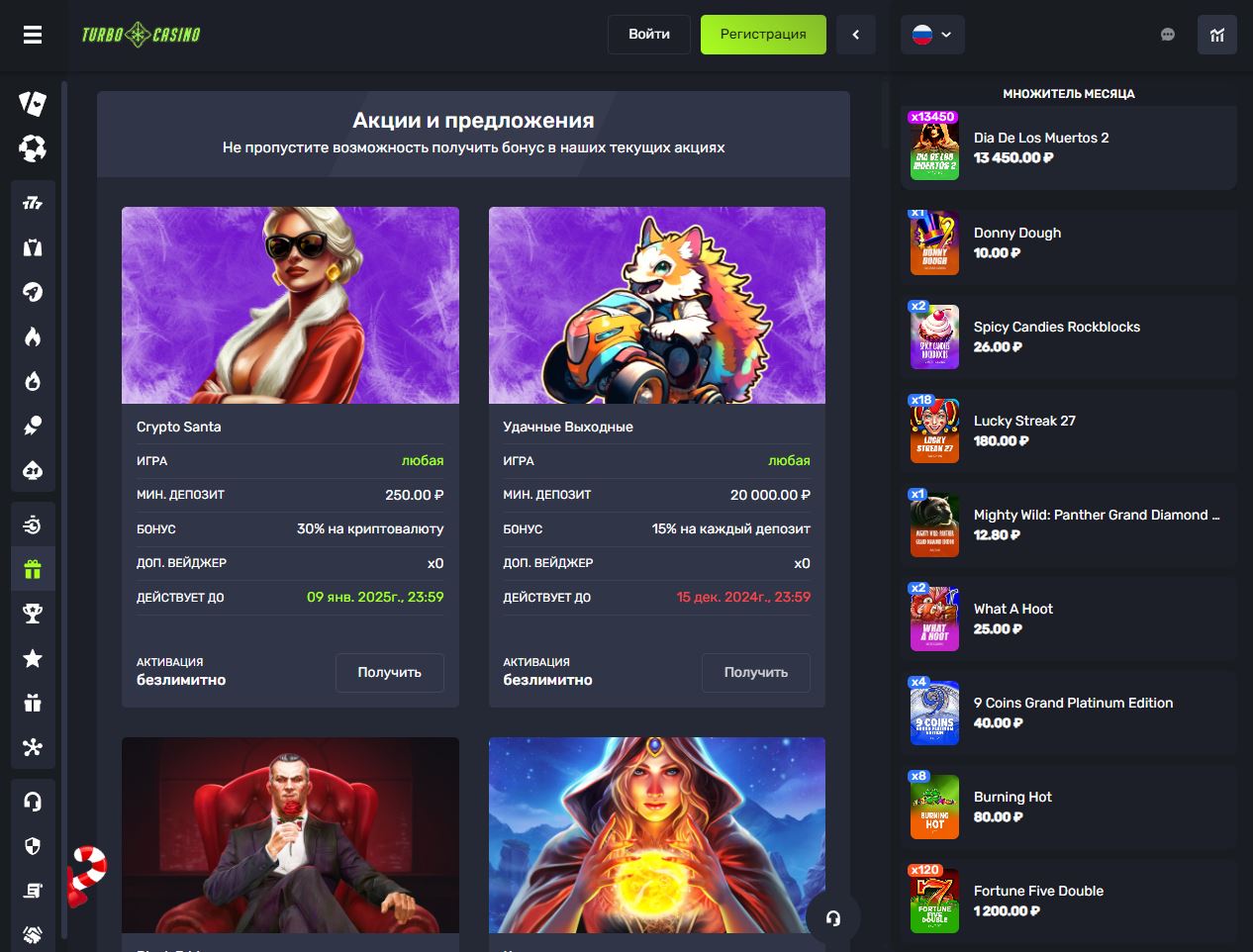 Бонусы и акции Казино Турбо